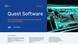 Quest, fournisseur mondial de solutions informatiques, s’est associé à Diabsolut pour mieux contrôler ses opérations de services professionnels. Grâce à la mise en œuvre de Certinia PSA, Quest a obtenu une visibilité en temps réel sur la performance des projets et l’utilisation des ressources. Cela lui a permis d’améliorer l’efficacité de la livraison, de renforcer les prévisions et de garantir la rentabilité de ses missions.